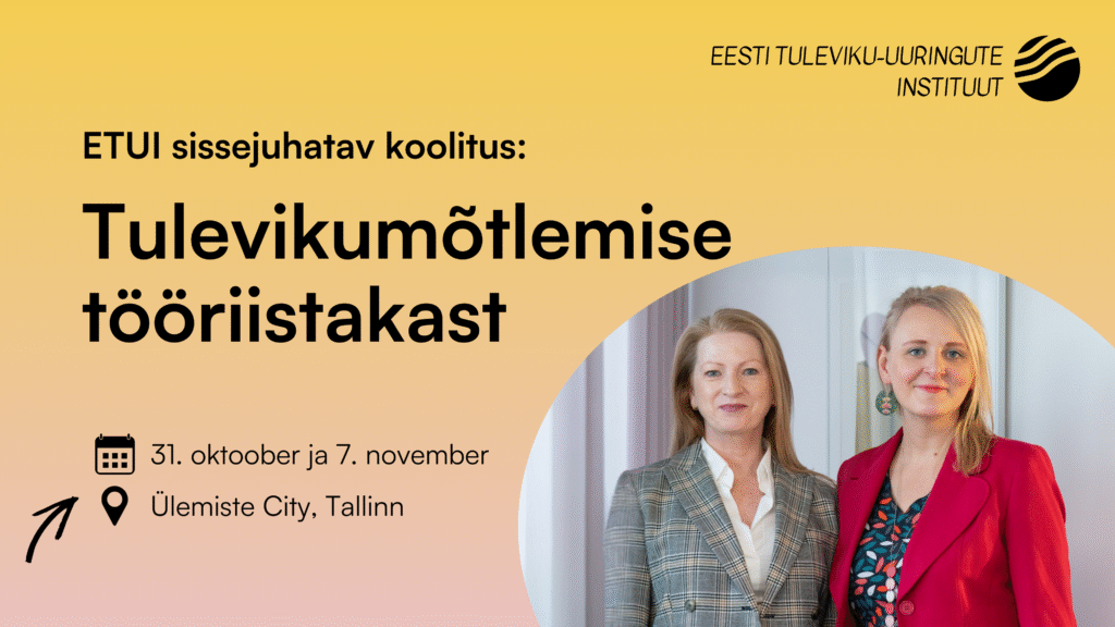 Sellel sügisel korraldame Ülemiste Citys järgmise tulevikumõtlemise sissejuhatava koolituse, mille eesmärk on anda terviklik ülevaade tulevikumõtlemise sammudest ja tööriistadest ning aidata osalistel mõelda, kuidas tulevikumõtlemist enda või oma organisatsiooni tegevustesse tuua.