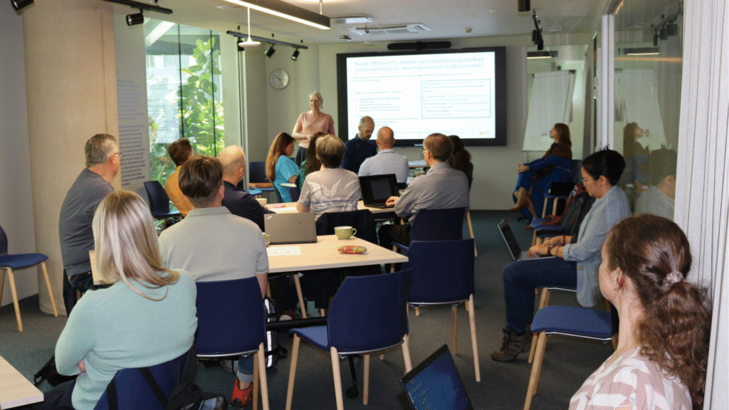 Osalesime Tallinna Ülikooli täiendõppekoolitusel “Kestlik personalijuhtimine”, kus meie ülesandeks oli aidata personalijuhtidel sukelduda praktiliste harjutuste abil tulevikumõtlemise maailma. Kursuse käigus analüüsisid osalejad, kuidas olla täna paremini valmis erinevateks tehisintellekti arengustsenaariumideks. Üheskoos avastasime personalijuhi rolli oma organisatsiooni tulevikumõtlemise eestvedajana.